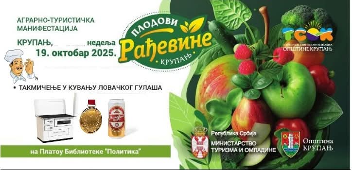 Manifestacija „Plodovi Rađevine“ biće održana u subotu i nedelju, 18. i 19, oktobra, na Platou Biblioteke „Politika“ u Krupnju.